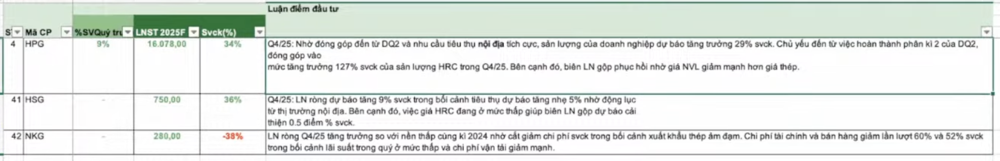 • Tính cả năm 2025, HPG khả năng tăng trưởng khoảng 34%, đạt lợi nhuận 16.000 tỷ. (Năm 2024 là khoảng 12k tỷ)