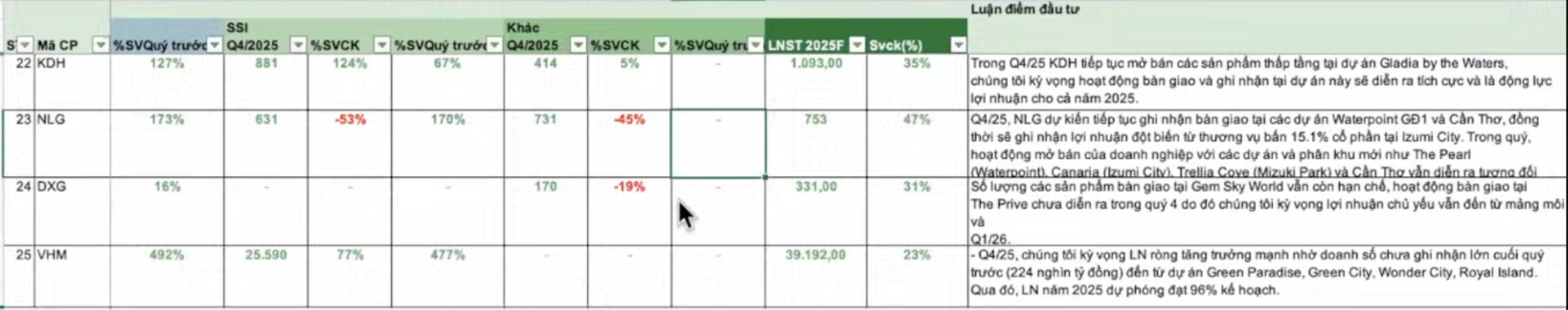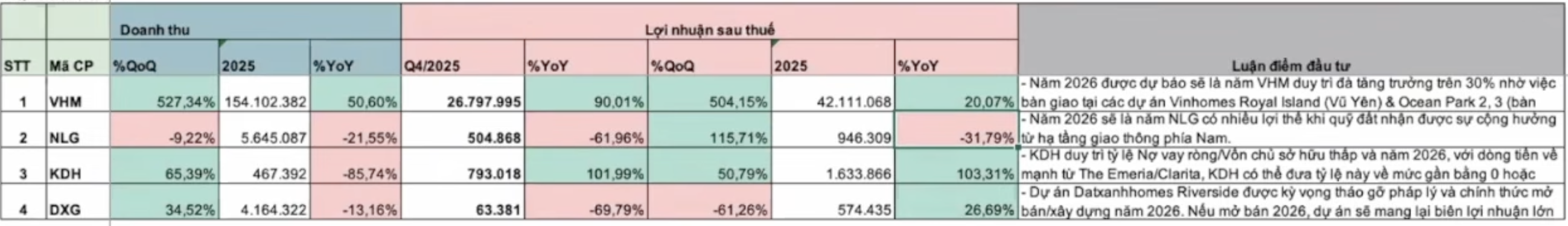 • Chu kỳ bàn giao nhà trọng điểm rơi vào quý II và quý III năm 2026 Năm 2025, dù cả năm có sự khởi sắc, vẫn tăng trưởng, nhưng so với cùng kì thì Quý IV vẫn có thể là thấp.