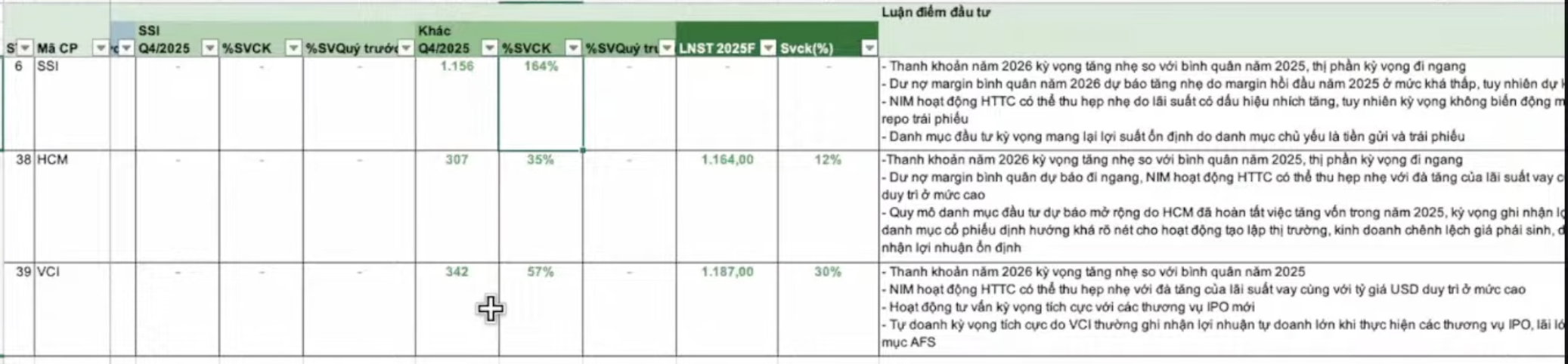 • VIX và SHS lợi nhuận QoQ đều giảm mạnh, do đỉnh các cổ phiếu mà các công ty này nắm đều ở quý III hết rồi Sẽ có sự suy giảm. Và có thể quý I/ 2026 còn có thể suy giảm tiếp.