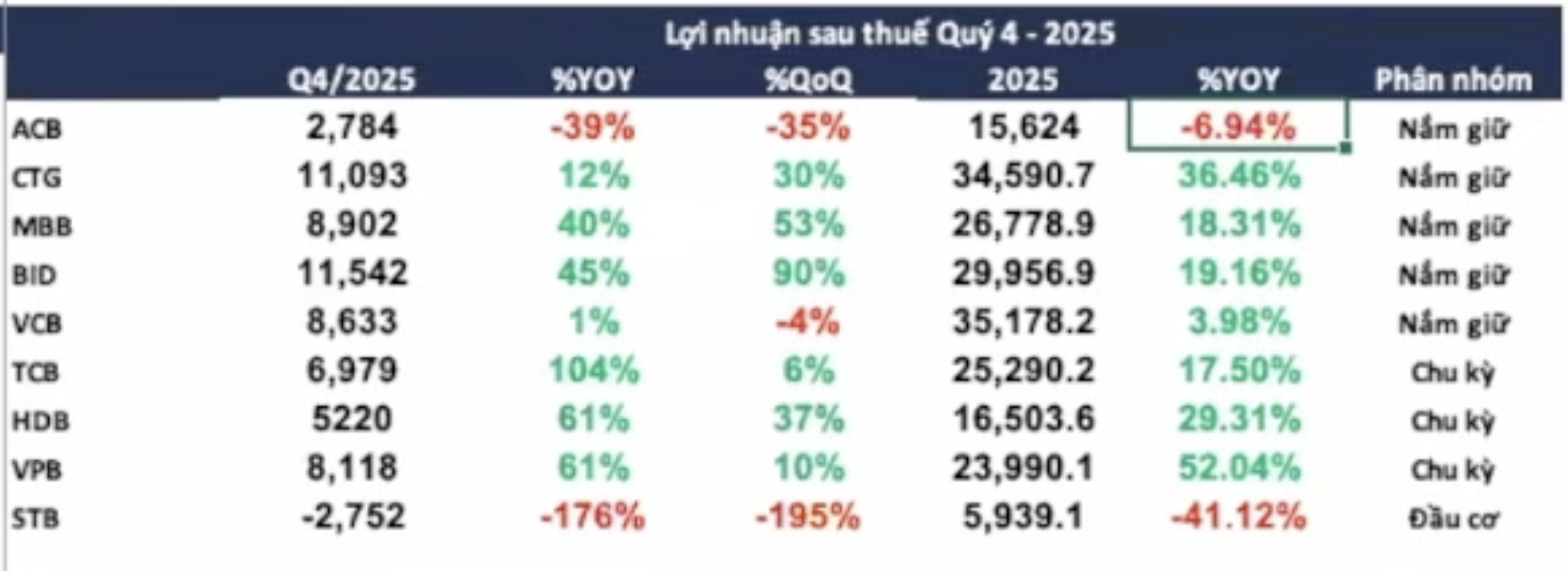 • ACB và STB trích lập rất mạnh Họ thông báo lỗ luôn.