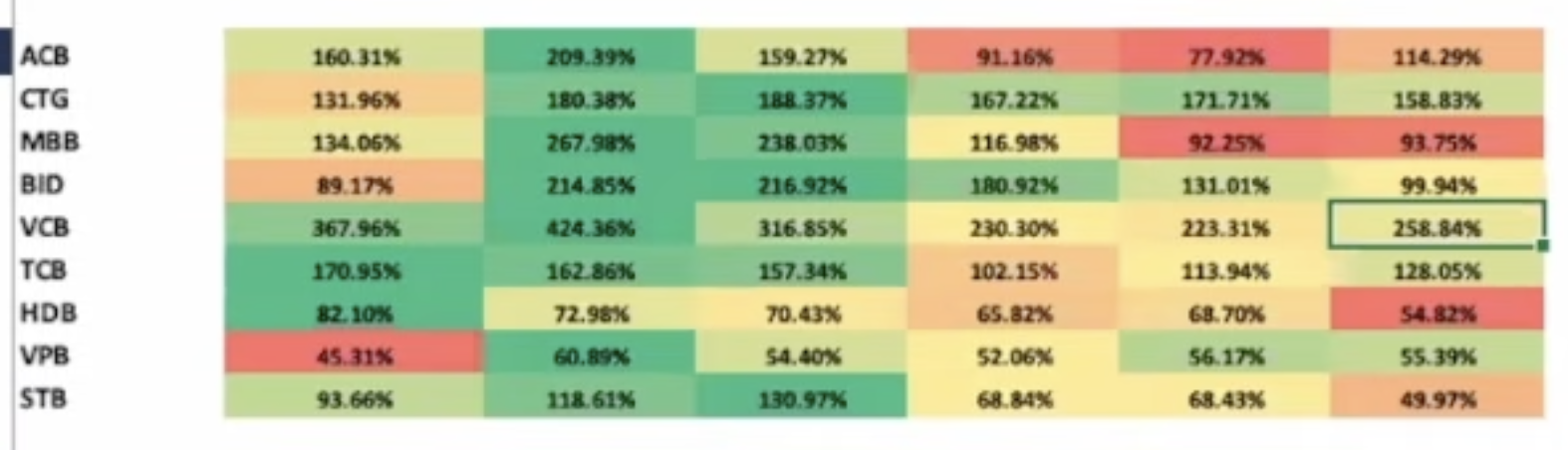 Các cổ phiếu tăng trưởng đều đặn: CTG, MBB, BID, VCB, ACB