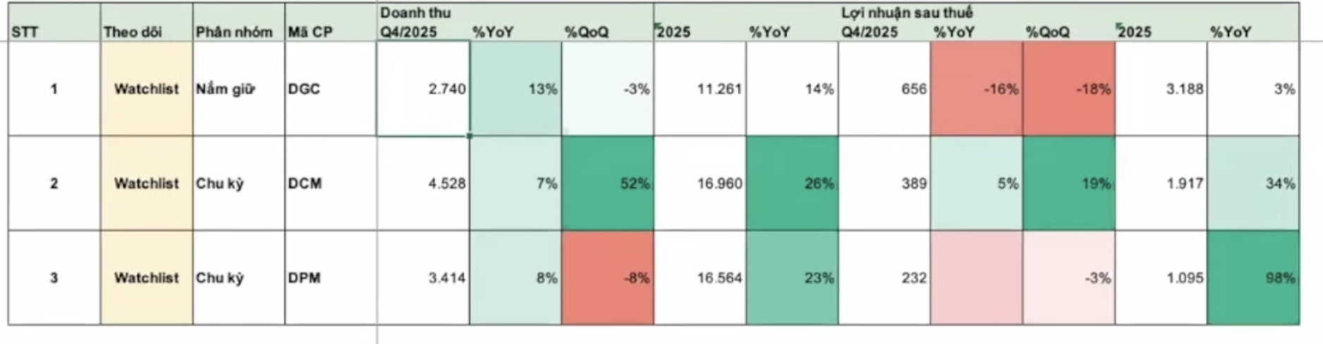 • DGC - Đầu tư dài hạn thì có thể mua được rồi. Nhưng nếu tin xấu ra, thì phải chấp nhận việc lỗ ngắn hạn