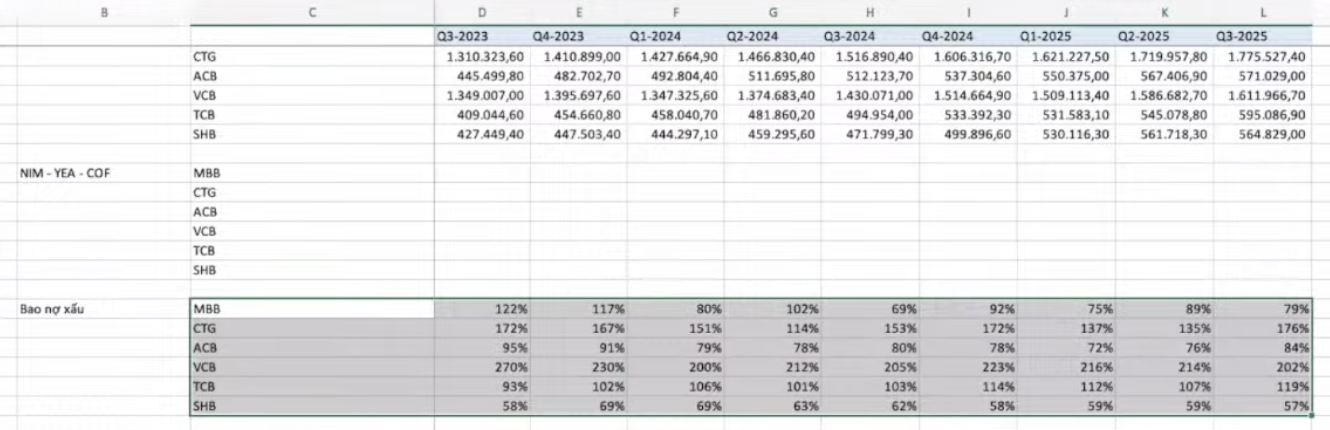 Chất - Nợ xấu và bao phủ nợ xấu ⇒ Thể hiện lợi nhuận có bền vững hay không, tăng trưởng cho các quý tiếp theo, phản ánh lợi nhuận tương lai