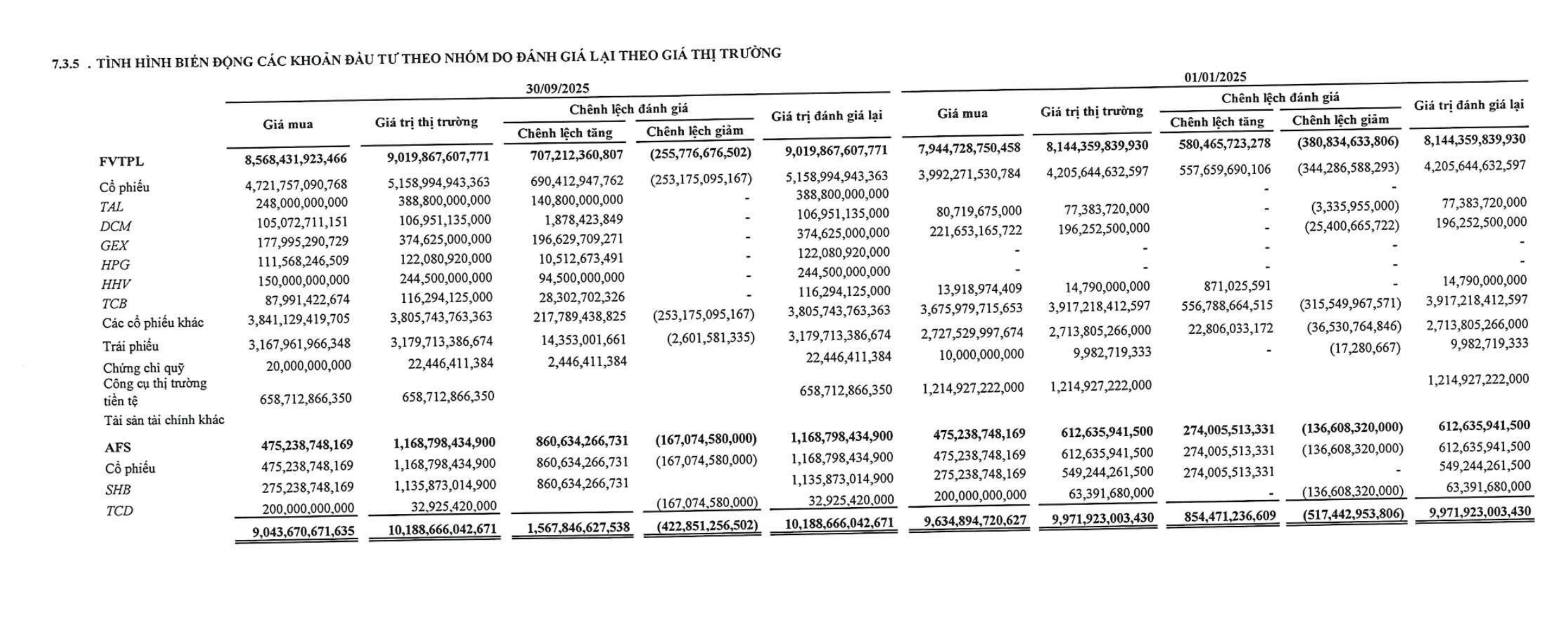 - Khoản đầu tư vào TCD của tự doanh SHS lỗ trong quý III khoảng 31 tỷ, nhưng họ để ở mục AFS ⇒ Chưa bán thì chưa ghi nhận lỗ.